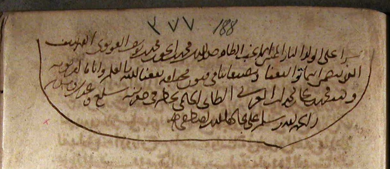 لكنَّ ما يلفت الانتباه ويثير بعض الدهشة ويبعث على الحيرة هو وجود إشارة ربما تعني أنَّ هذه النسخة قد كتبت في القاهرة، أو ربما أثناء السفر ثم قرئت هناك، وتحديداً في المدرسة "الغزنوية"، التي في سويقة أمير الجيوش بالقاهرة، حيث نجد في أعلى الصفحة 188أ مكتوباً بخط الشيخ محي الدين، كما هو موضح في الشكل المرفق: "قرأ عليّ الولد البار المجتبى الأنجب الطاهر صدر الدين محمد بن إسحق بن محمد بن يوسف القونوي الفهرست الذي يتضمن أسماء تواليفنا وتصنيفاتنا في فنون مختلفة، نفعنا الله بالعلم، وأنا بالغزنوية. وكتب محمد بن علي بن محمد ابن العربي الطائي الحاتمي بخطه في صفر سنة سبع وعشرين وستمائة، والحمد لله، وسلام على عباده الذين اصطفى." غير أنَّ هذه العبارة "وأنا بالغزنوية"، التي أثبتها الباحث بكري علاء في ملاحظة غير منشورة، ليست واضحة تماماً، خاصة وأنها وردت بعد الدعاء، ولذلك ربما يجب أن تُقرأ مثلاً "نفعنا الله بالعلم وآتانا القرب به"، مع أنَّ القراءة الأولى هي الأقرب إلى شكل الخط المنقوش في الأصل، والله أعلم.