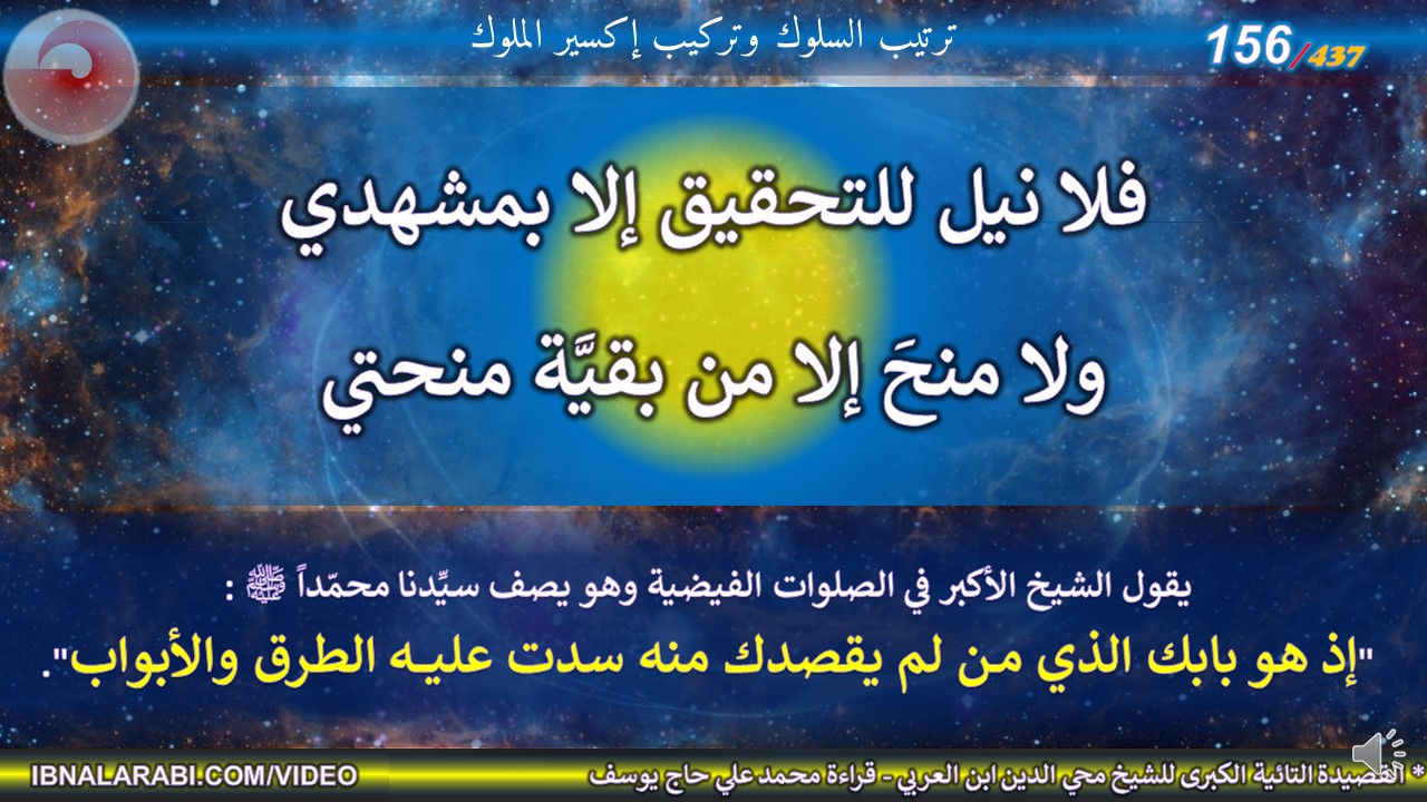 يقول الشيخ الأكبر في الصلوات الفيضية وهو يصف سيِّدنا محمّداً ﷺ : "إذ هو بابك الذي مــن لم يقصدك منه سدت عليــــه الطرق والأبواب".