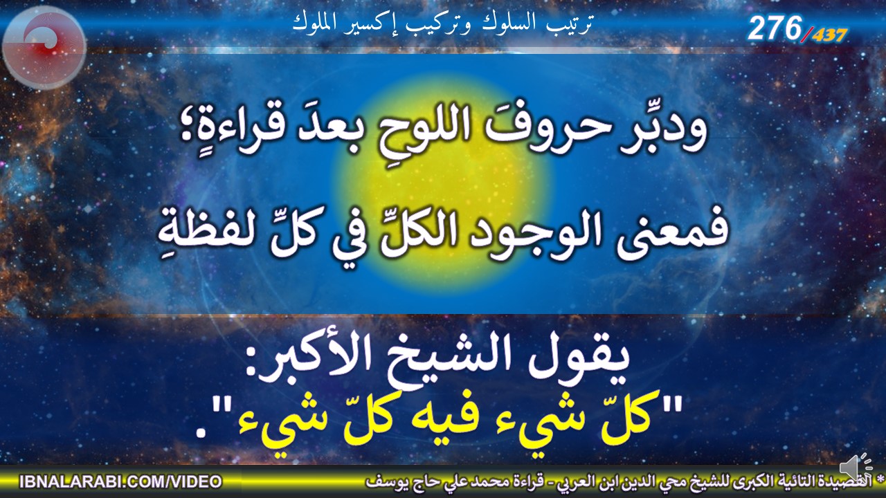 | ودبِّر حروفَ اللوحِ بعدَ قراءةٍ؛ *** فمعنى الوجود الكلِّ في كلِّ لفظةِ | ||||