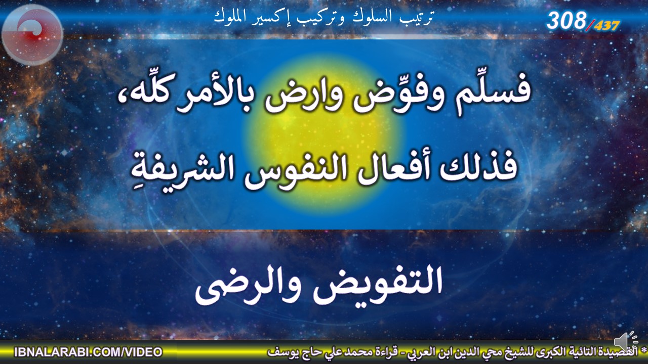 فسلِّم وفوِّض وارض بالأمر كلِّه، *** فذلك أفعال النفوس الشريفةِ