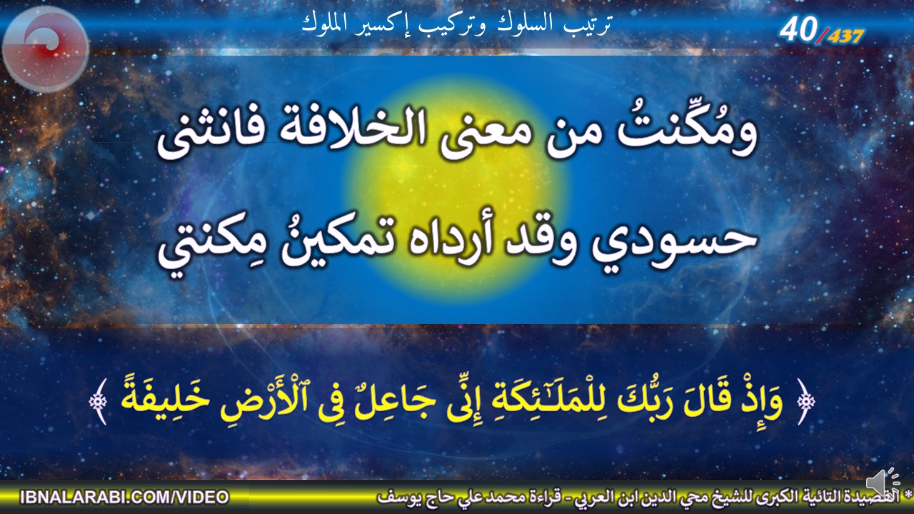 | ﴿ وَإِذْ قَالَ رَبُّكَ لِلْمَلَٰٓئِكَةِ إِنِّى جَاعِلٌ فِى ٱلْأَرْضِ خَلِيفَةً ﴾ | ||||