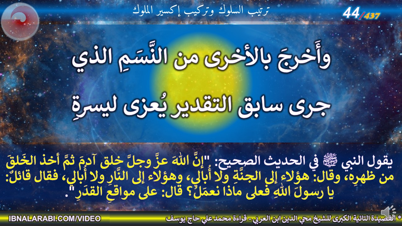 وأَخرجَ بالأخرى من النَّسَمِ الذي *** جرى سابق التقدير يُعزى ليسرةِ