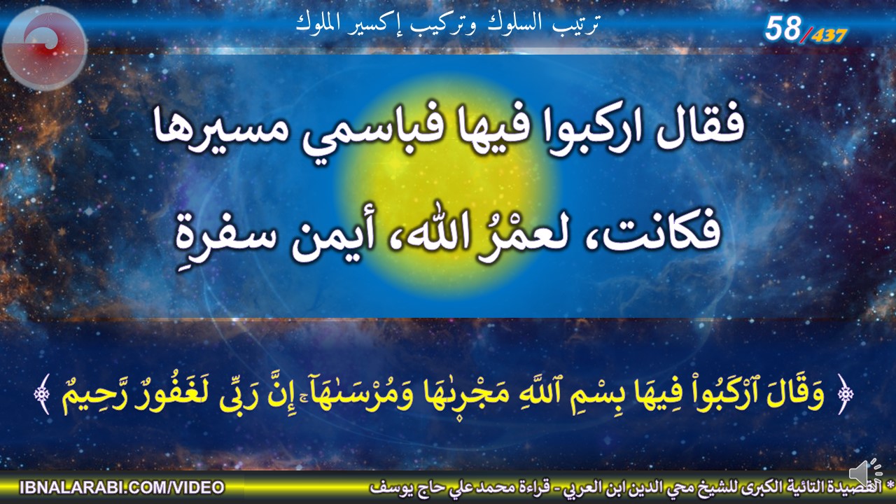 فقال اركبوا فيها فباسمي مسيرها *** فكانت، لعمْرُ الله، أيمن سفرةِ