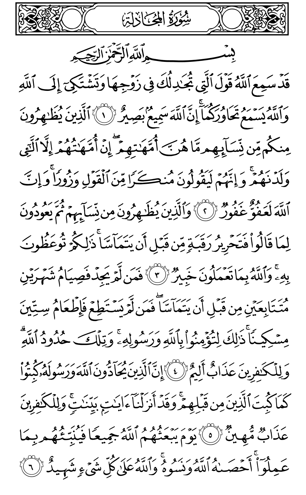 سورة المجادلة (القراءة بصوت القارئ محمود خليل الحصري)