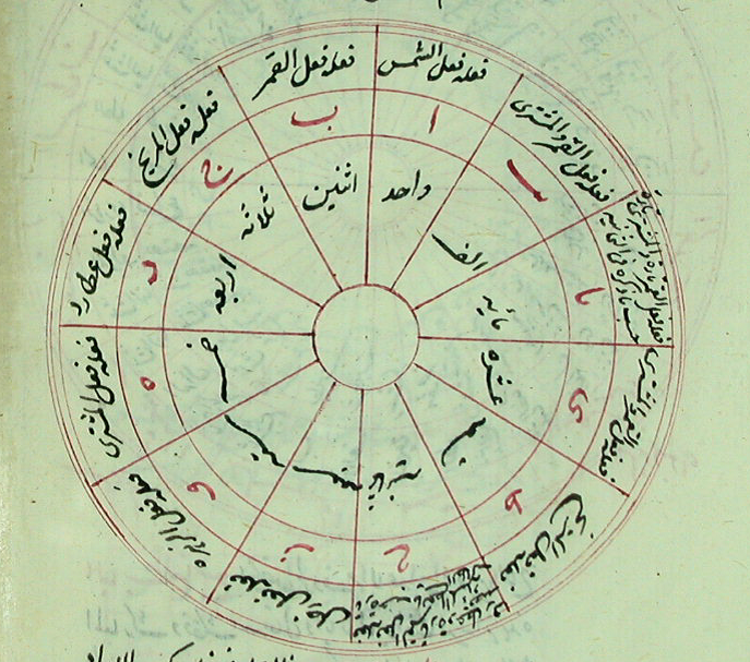اعلم أخي أصلحك الله تعالى وإيانا بهدايته، أن الحروف كما اختصت بأعداد تناسب الفلك مقترنة بأفعال الكواكب وتأثيرها في العالم، وأنا أذكره لك في هذا المثال إن شاء الله تعالى، فافهم وتأمل ترشد، والله يؤتي الفضل لمن يشاء.