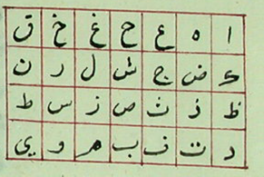 فأمَّا الحروفُ: فهي لفظٌ مشتركٌ مطلقٌ على اللفظِ، وهو قطعُ الهواءِ الخارجِ منِ المتنفِّسِ المتردِ في بعضِ طريقِ ذلك الهواءِ منِ الصدرِ إلى الشفتين، وهذه هي الحروفُ الطبيعيةُ الحقيقيةُ الأصليةُ، التي أغفلها المتكلمون على أسرارِ الحروفِ واشتغلوا بالطبيعةِ العارضةِ فيها البعيدِ معناها التي لا ترتبطُ فائدتُها ارتباطًا يُعتَمَدُ عليهِ، وهي ثمانيةٌ وعشرون حرفًا، وهذه صورتُها على حسبِ ما تقتضيه أماكنهُا وطبائعُها وهي: [(ا) - (هـ) - (ع) - (ح) - (غ) - (خ) - (ق) - (ك) - (ض) - (ج) - (ش) - (ل) - (ر) - (ن) - (ظ) - (ذ) - (ث) - (ص) - (ز) - (س) - (ط) - (د) - (ت) - (ف) - (ب) - (م) - (و) - (ي)].