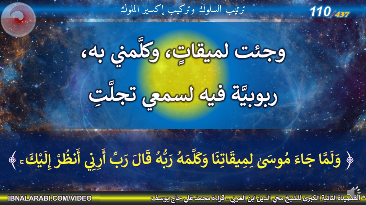 | وجئت لميقاتٍ، وكلَّمني به، *** ربوبيَّة فيه لسمعي تجلَّتِ | ||||