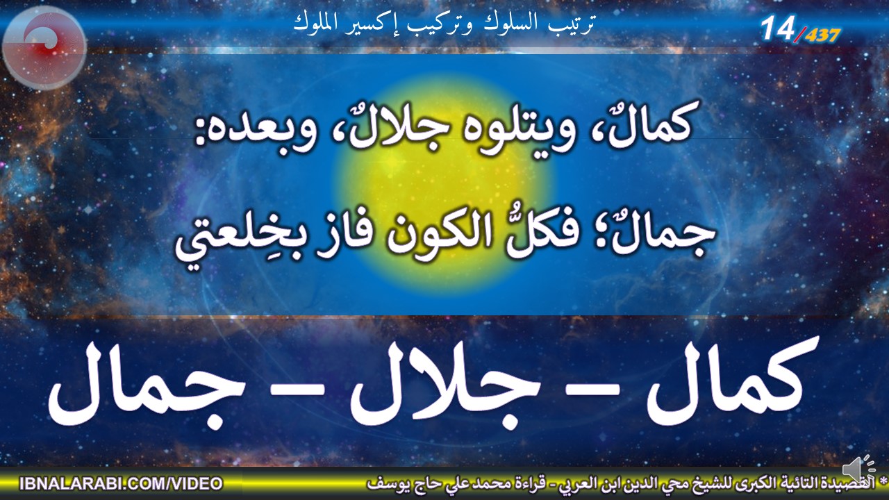 كمالٌ، ويتلوه جلالٌ، وبعده: *** جمالٌ؛ فكلُّ الكون فاز بخِلعتي