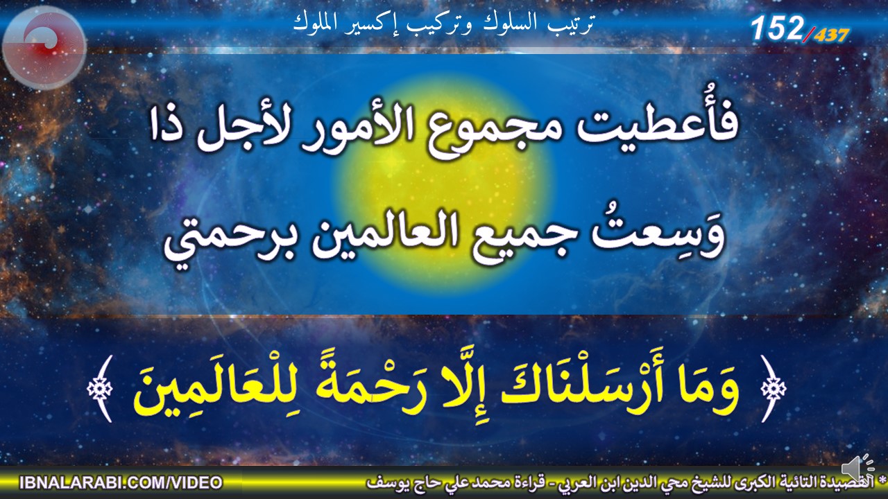 | فأُعطيت مجموع الأمور لأجل ذ *** وَسِعتُ جميع العالمين برحمتي | ||||