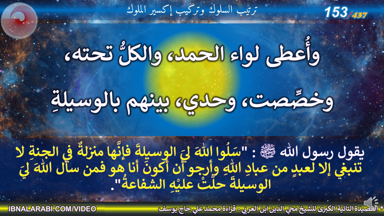 وأُعطى لواء الحمد، والكلُّ تحته، *** وخصِّصت، وحدي، بينهم بالوسيلةِ