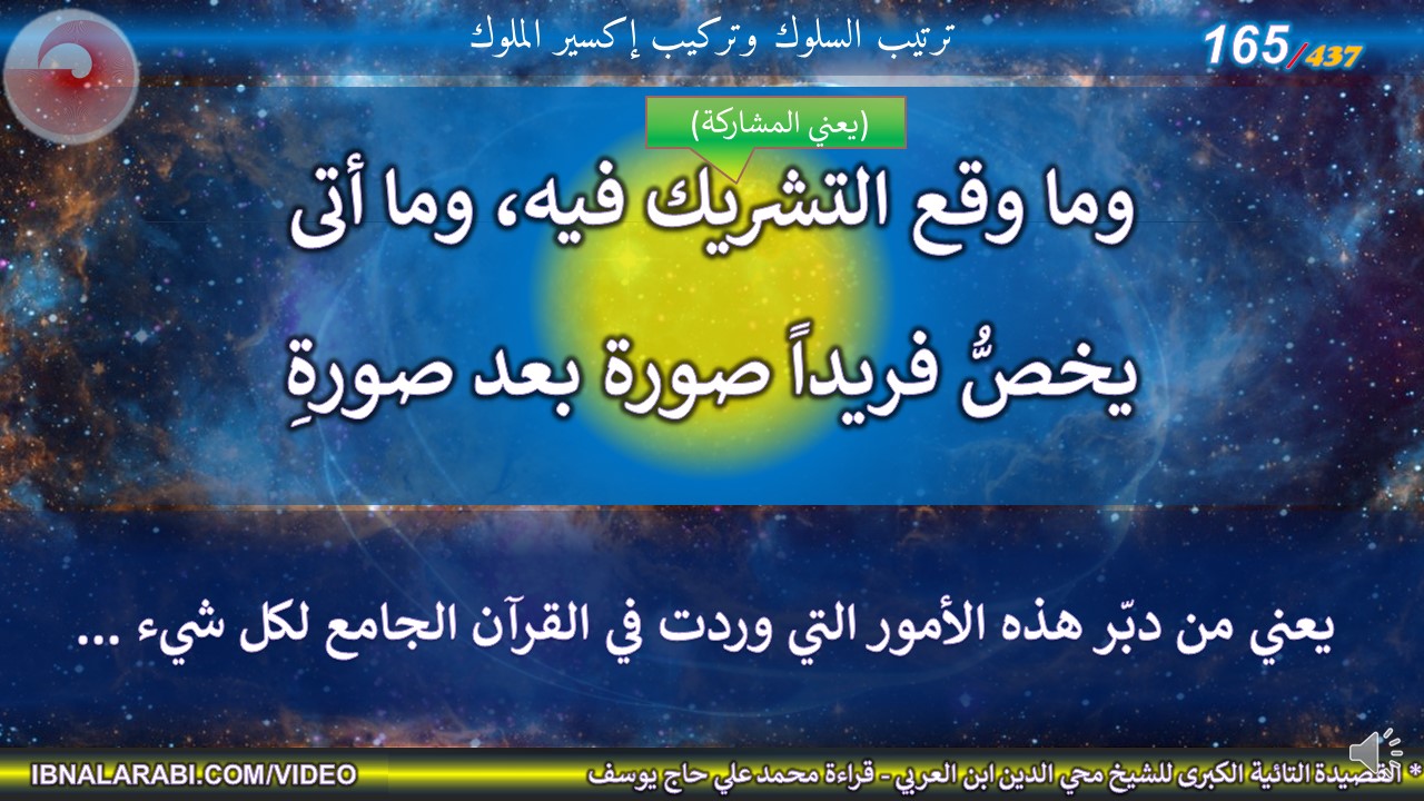 | وما وقع التشريك فيه، وما أتى *** يخصُّ فريداً صورة بعد صورةِ | ||||
