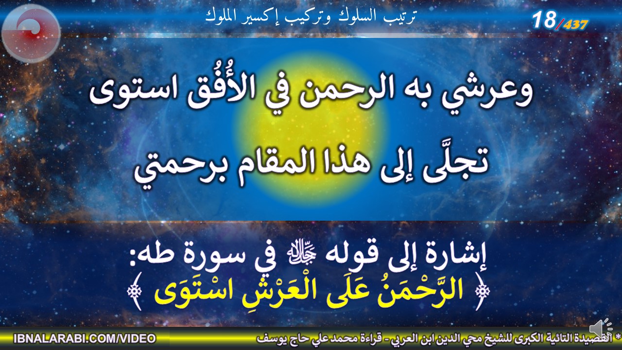 | وعرشي به الرحمن في الأُفُق استوى *** تجلَّى إلى هذا المقام برحمتي | ||||