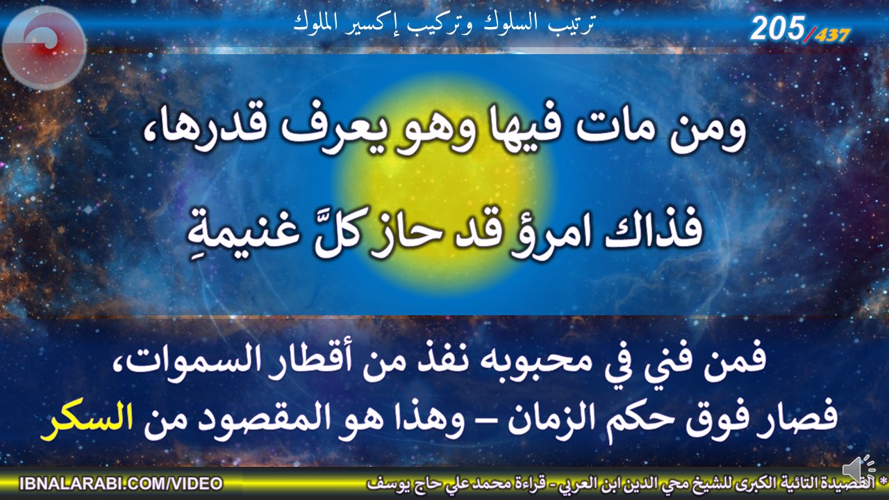 | فمن فني في محبوبه نفذ من أقطار السموات، فصار فوق حكم الزمان – وهذا هو المقصود منالسكر |