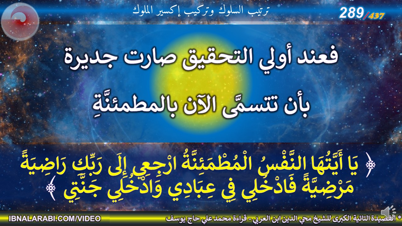 فعند أولي التحقيق صارت جديرة *** بأن تتسمَّى الآن بالمطمئنَّةِ