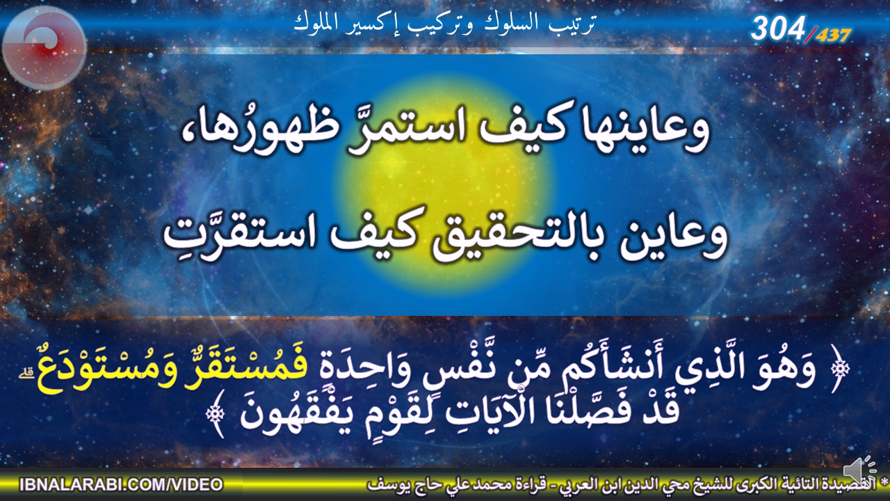 وعاينها كيف استمرَّ ظهورُها، *** وعاين بالتحقيق كيف استقرَّتِ