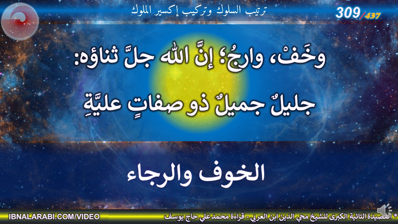 وخَفْ، وارجُ؛ إنَّ الله جلَّ ثناؤه: *** جليلٌ جميلٌ ذو صفاتٍ عليَّةِ
