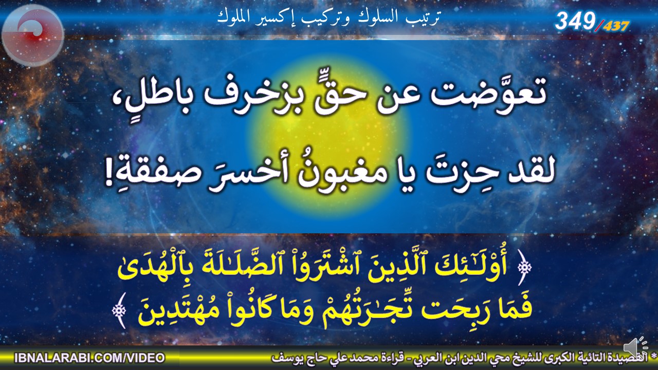 تعوَّضت عن حقٍّ بزخرف باطلٍ، *** لقد حِزتَ يا مغبونُ أخسرَ صفقةِ!