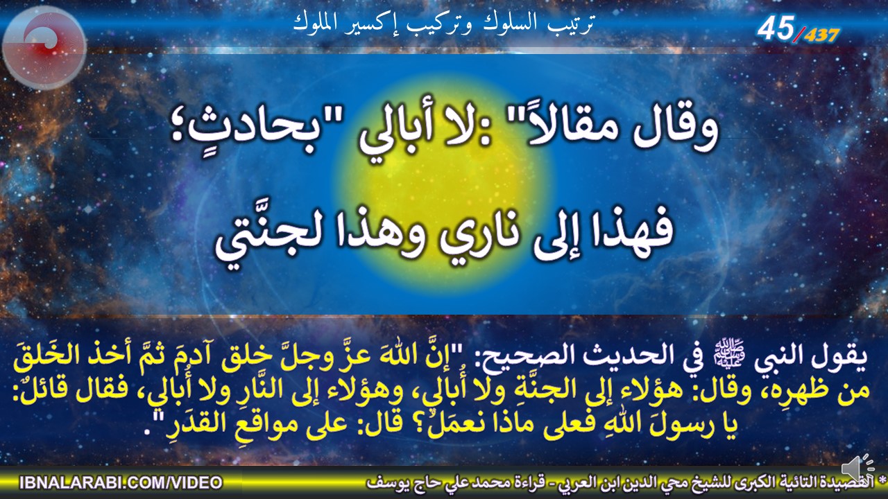 يقول النبي ﷺ في الحديث الصحيح: "إنَّ اللهَ عزَّ وجلَّ خلق آدمَ ثمَّ أخذ الخَلقَ من ظهرِه، وقال: هؤلاء إلى الجنَّةِ ولا أُبالي، وهؤلاء إلى النَّارِ ولا أُبالي، فقال قائلٌ: يا رسولَ اللهِ فعلى ماذا نعمَلُ؟ قال: على مواقعِ القدَرِ".
