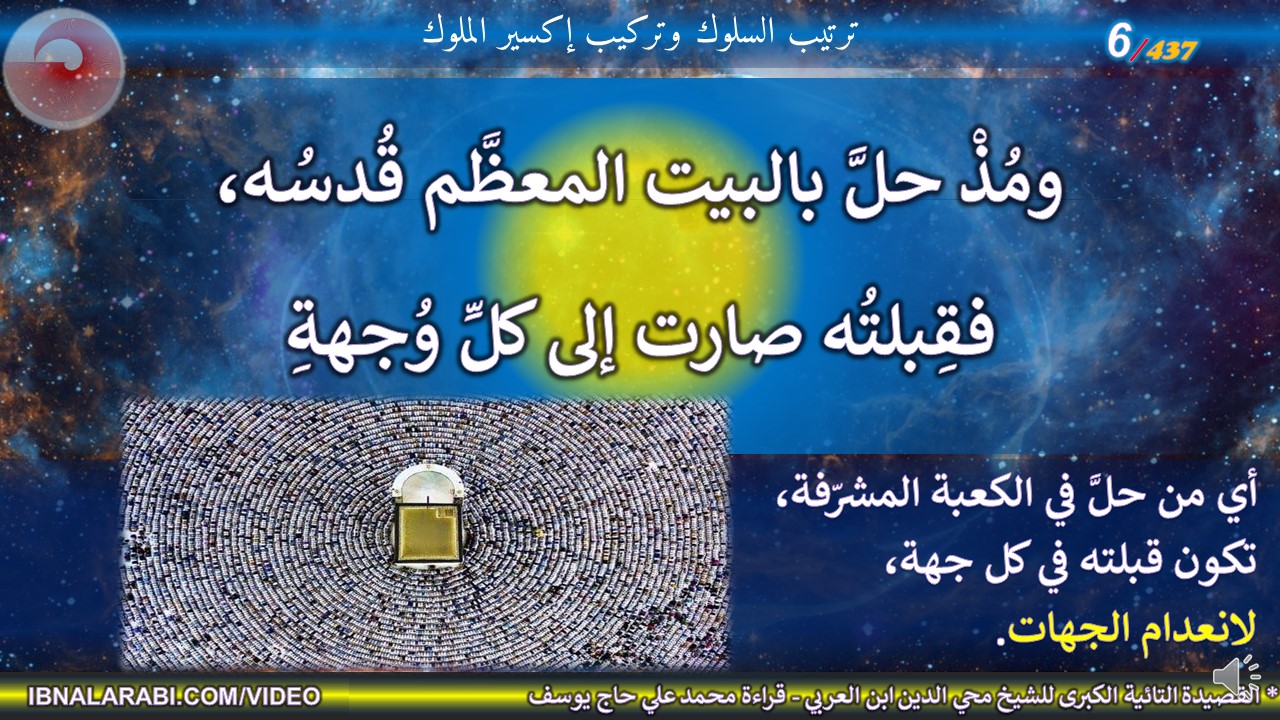 | ومُذْ حلَّ بالبيت المعظَّم قُدسُه، *** فقِبلتُه صارت إلى كلِّ وُجهةِ | ||||