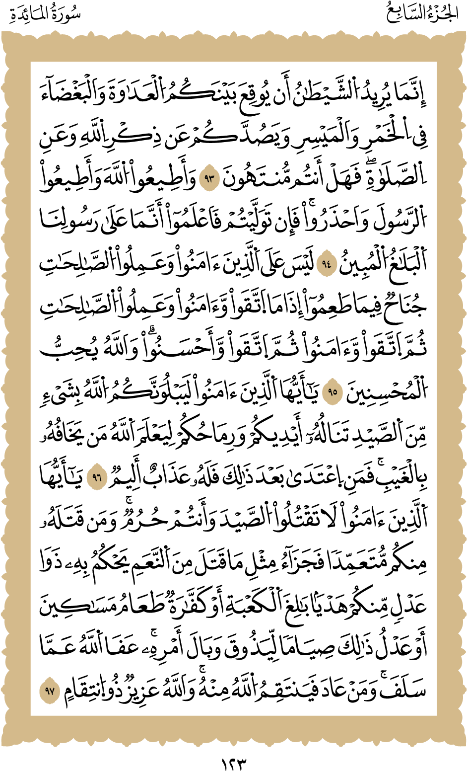 المكتبة الأكبرية: القرآن الكريم الصفحة: (123)