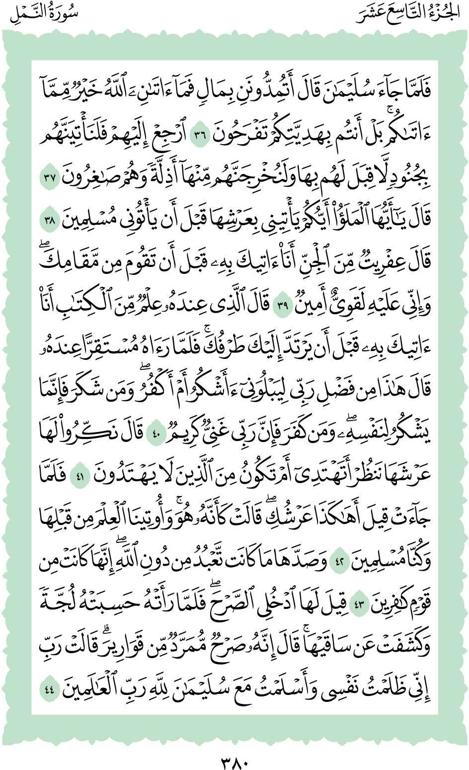 المكتبة الأكبرية: القرآن الكريم الصفحة: (380)