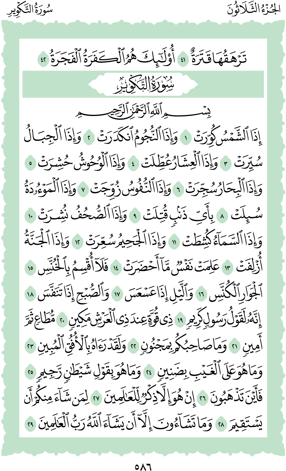 المكتبة الأكبرية: القرآن الكريم الصفحة: (586)